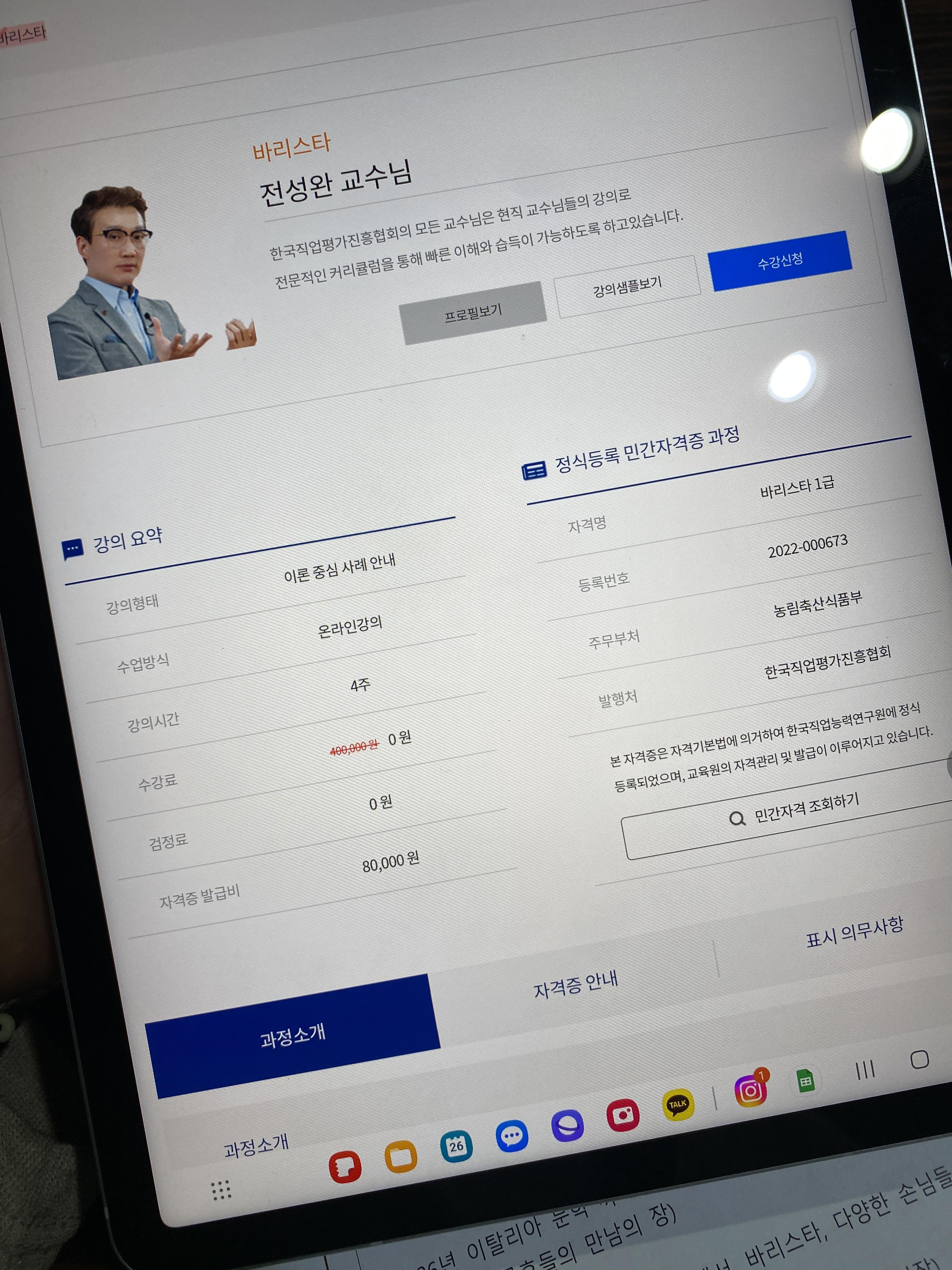 인터넷으로도 바리스타 자격증 즉, 그러니까 바리스타 1급 자격증 취득이